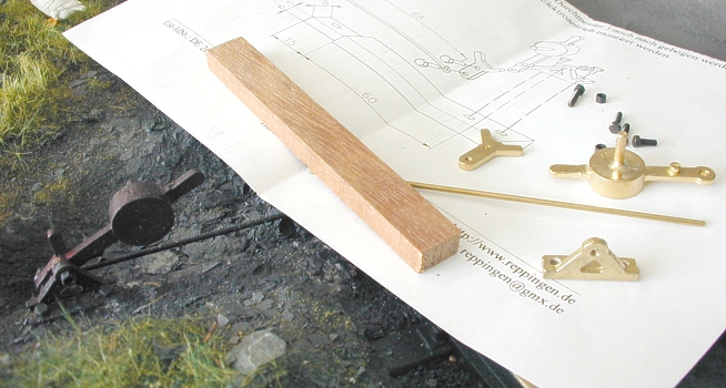 | On a recent show in Kaarst (Germany) I met mr. Reppingen - a livesteam manufacturer. He and his group made me fall in love with livesteam (radiocontrolled with remote uncoupling !) So who knows... Also he sold me some cast brass levers for the points. I was looking for them. They are fantastic ! Although I do not know how they will work after loads of exhibitions, I am very happy with them now. Take a look at www.reppingen.de and tell him I sent you! Pictures below are taken in febr. 2002. |