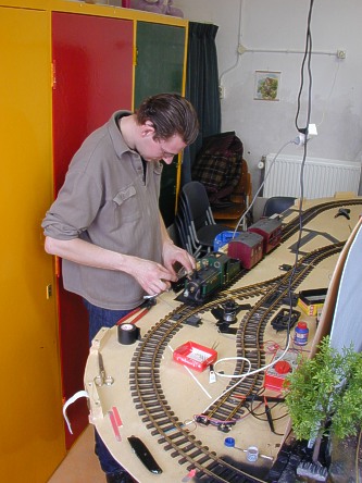 | BELOW: 25.03 2002. Pointless' first outing: the NMF open days at the Zutphen Club. Vincent and I worked on the wiring, so the layout can be finished in the next few months. A lot remains to be done, but I like it so far... |
