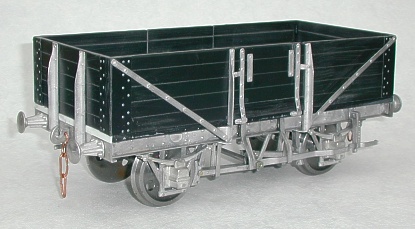 | Right & below: The standard gauge wagon under construction. It will be parked on the track, delivering coal to the Pointless Railway. I hope it won't be ruined by my painting & lettering...What you see below is fake lettering! |