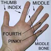 Names of the fingers and where the "Middle Bone" is.