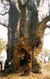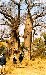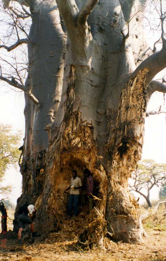 The famous Baobab tree, which is known as 'Mowana' in Setswana. The one on the left was taken from a distance of about 80m. The other is a close-up to give you an idea how big the tree can grow. Unfortunately, the tree trunk is a favourite food source of the elephants. |