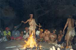 The parents of the children and some elders in the settlement performed Tsutsube dance at night by the bonfire. |