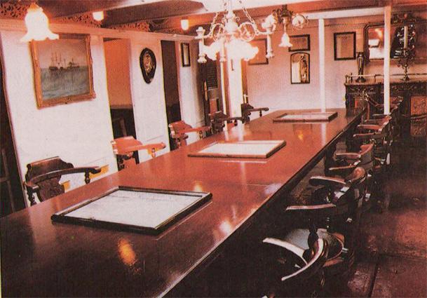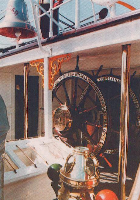 Debajo, el comedor de Oficiales, usado también para las discusiones y la planificación estratégica en el mar. Abajo la rueda del timón del buque. Puede observarse en la parte delantera la inscripción con el nombre del Capitán peruano José María Salcedo quien supervisó la construcción del blindado en Londres. Atrás se lee la frase “El hombre honrado, leal y valiente inspira honor y orgullo a sus compatriotas. El traidor y cobarde es el baldón y deshonra de su patria”. Es casi seguro que varios de los tripulantes del Huáscar estuvieron inspirados por esa inscripción durante sus combates en el mar, incluyendo Angamos, la ultima batalla.