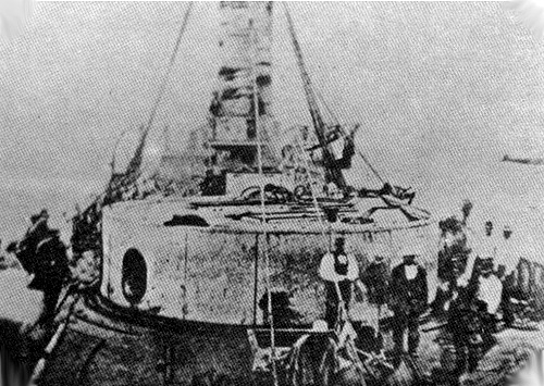 Pocos buques en la historia naval han soportado daños tan terribles y se han mantenido aún a flote como el “Huáscar” luego del Combate Naval de Angamos. Los cañones chilenos fueron devastadores y su puntería colosal. Casí el 50% de los disparos tuvieron un impacto directo. La escena a bordo del buque era terrible. Los muertos y heridos estuvieron tendidos en todas partes; mas de un tercio de la tripulación fue muerta o herida. El blindaje del “Huáscar” había sido inútil contra las granadas Palliser utilizadas por los chilenos, que penetraron fácilmente su coraza y explotaron dentro del buque, haciendo volar miles de fragmentos de metralla en todas partes. Durante el combate los acorazados chilenos lanzaron 150 cañonazos contra el Huáscar, y le impactaron 76, de los cuales 20 eran granadas Palliser de 250 libras. Los demás proyectiles fueron de diverso calibre, más un número indeterminado de balas de metralla, que no dejaron ninguna sección del blindado intacta. La foto de arriba fue tomada en Valparaíso, pocos días después del combate, en la cual los daños pueden ser vistos claramente. Abajo, un dibujo al carbón que muestra los impactos con mas detalle. Después del combate, marinos norteamericanos del barco USS Pensacola abordaron la nave para evaluar los mortíferos efectos de los Palliser. Fue la primera vez que tales proyectiles perforantes fueron usados en combate real.