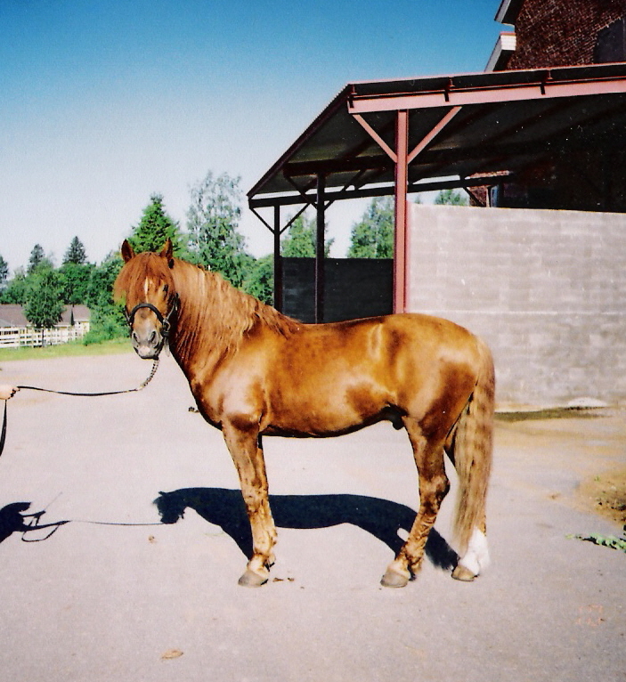 | Menneisyys Ville on aika orimainen tapaus. Se on onneksi kasvatettu hyvin Koiramets�ss�. Se toimi hienosti talutuksessa ja antoi k�sitell� itse��n, kun se tuli t�nne. T��ll� sitten aloitettiin ajo-opetus. Ville on alusta asti ollut hieman kovasuinen ajettava. Sill� oli my�s pienest� pit�en kova halu menn�. Sen per�ss� sai melkein juosta, kun ajettiin takaa. Onneksi sille saatiin melkein heti k�rryt per��n. Siin�kin saivat taluttajat juosta l�hes koko ajan. Ville on ihan hyv� ajaa, mutta tarvitsee p��tt�v�isen ohjastajan, sill� jos se saa v�h�nkin periksi, niin sitten se ei k�vele lainkaan. Raveissa Kotona Tulevaisuus Varusteista: Takasiin putsit ja korkeat suojat, kieli kiinni. Faktajuttu: Tullut talliin suoraan kasvattajalta 12.8.2002. Suvusta Sisarukset