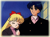 | Katarina � Alan!! Minako-chan, MINAKO-CHAN! Alan � What happened to Minako-chan? Hang on, I'm here for you... Venus : That's when I realized that Alan and Oneesama were in love. I disappeared that day. I thought it would be better for them if I stayed dead. According to the anime, when Mina fought as Sailor V in England, she had a crush on an older man called Alan. However, it turned out that Alan was in love with Mina's best friend, her "oneesama" or "big sister," Katarina. Thinking that she was too young to understand, the two never revealed this to Mina. Mina had to find out the hard way when she saw the two embracing one night after a battle. Deeply hurt, Mina allowed the two to think she had been killed in battle, and she returned to Tokyo. Later, Katarina came to Tokyo, and the two made up. Mina may have loved Alan, but she gave him up to Katarina anyway because she knew that they loved each other. |