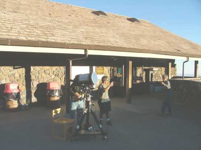 | Imaging setup used for the above H-Alpha images of the sun. The telescope was a Coronado Maxscope 70 (Nearstar) H-Alpha scope mounted with a C11 on a Losmandy G-11 Eq. Mount. The instruments belong to the Visitor's Center at Mauna Kea. |