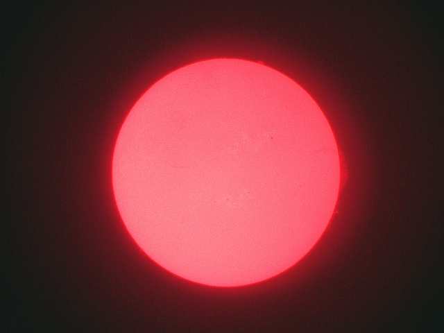 | H-Alpha images of the sun taken with my Fuji s5000 digital camera from Hale Pohaku, Mauna Kea, Hawaii. Exposure time (above 1/80th of sec, below 1/160th of sec) with camera held over 8mm Nagler. |