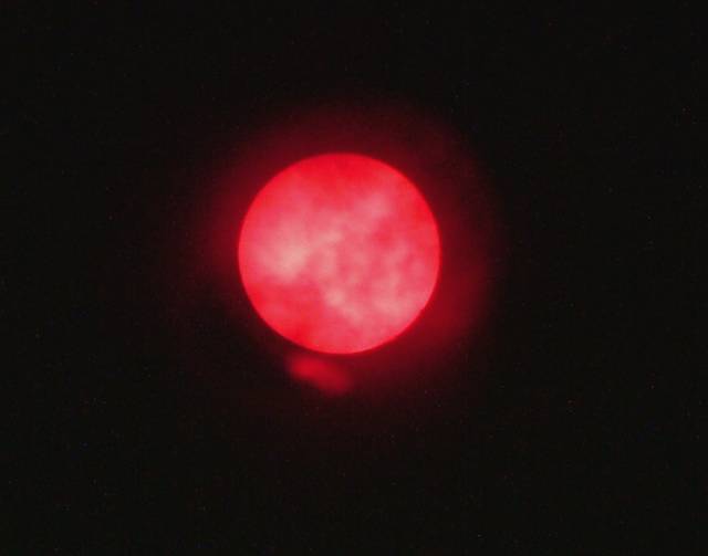| White light image taken through the 6-inch Meade dobsonian telescope with Fuji finepix s5000 digital camera using eyepiece projection (40mm). |