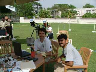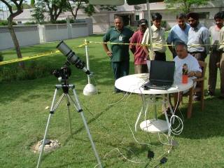 | Venus Transit, June 8th 2004. Observations from the US Embassy, New Delhi, India. Team Members: Dr Timothy R. Young, UND, Dr Ron Marsh, UND, Dr Tim Lawlor, Penn State, Vishnu Reddy Kanupuru, UND, Pratibha Kumar, Spaceguard India, R.H.B. Ramamurthy (Amateur Astronomer) |