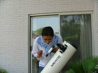 | Pratibha cleaning the American School's 6-inch Meade Dob prior to the transit on June 6th. |