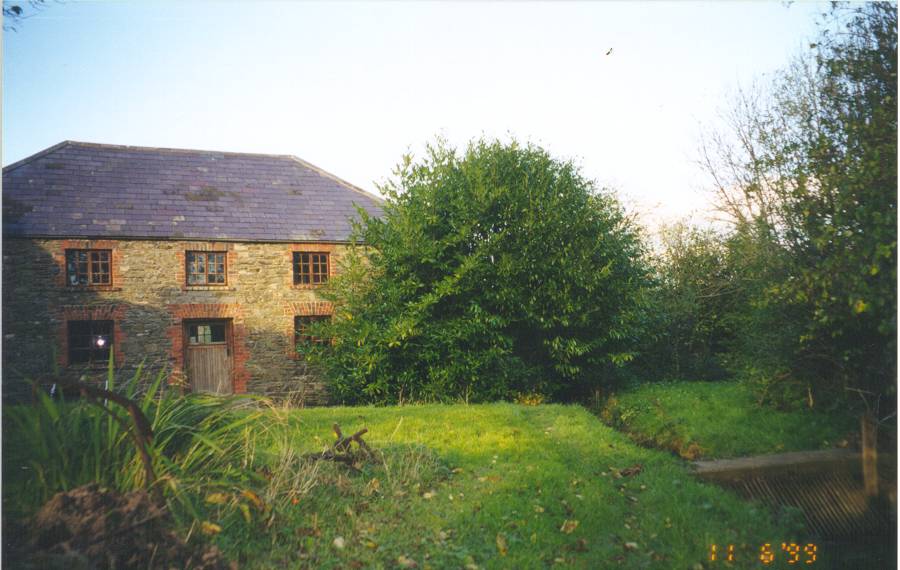 This picture was taken from the lane approaching the Mill. The Mill is on the left (out of sight) behind the original house, (the taller building), and an out building. On the right, the farthest building is the current home with the two chimneys and another out building.