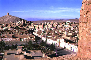 | Location: (Anarak, a city of about 4000 people is loctaed at the edge of the kavir loot and about 85 Km from the city of Nain. The city is surrounded by by ruins of an old wall and three look out towers that were built about 100 years ago to keep the bandits ( Hossein Kashi and his gang)out. There are little agriculture in this region but there are many mines located close to Anarak. Nakhlalk, a lead mine is the largest active mine close to Anarak. Many people live in Anarak and commute daily to Anarak. Language: people in Anarak speak a dialogue called Anaraki, Anaraki is spoken in Anarak and and cities within 40 miles of it such as Chopanan . Climate: Anarak's climate is a typical desert climate, little rainfall, hot dry summer days and cool nights. Most of the old home are adobe and have a court yard, people move from south to north of the court yard from winter to summer. Some of these old home like my uncles had about 15 rooms and a big open roofed balconey where you could sit in the summer afternoon and (called Sofe) and cool off via wind directed by wind chiminies ( Badgir). Most famous song: I told you 100 times golnesa (say var vetomvat Golnesa) Other Anarak Sites: http//www.anarak.com Anarak Web Page with sound and many pictures (very nice site, a must see) Searching for cheeta in the kavir near Anarak |