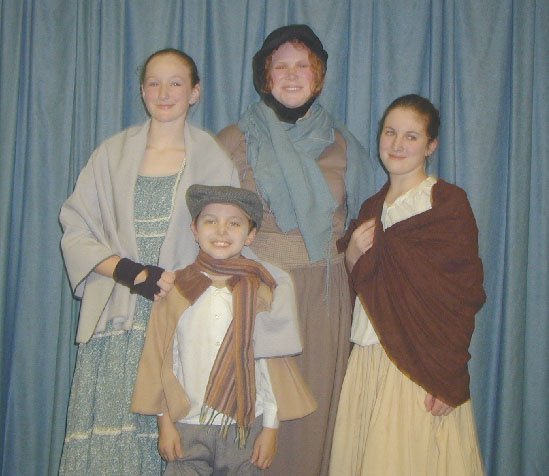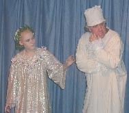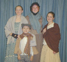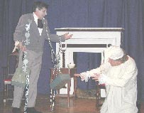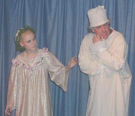 This was our 5th production of "Christmas Carol" since 1994. Like the show in 1999 it was an original adaptation. This has always been a popular show and has many choice roles for a large cast. This production only ran for 3 performances , although six had been scheduled. Weather and other difficulties were a problem for the first weekend. The show was performed Dec 19, 20,and 21 2002.