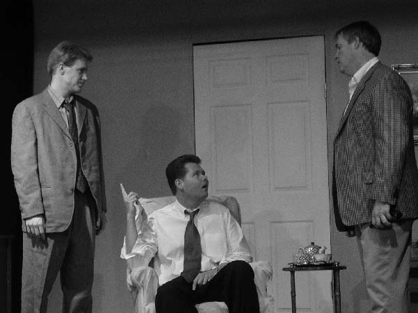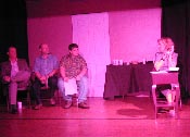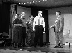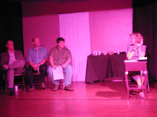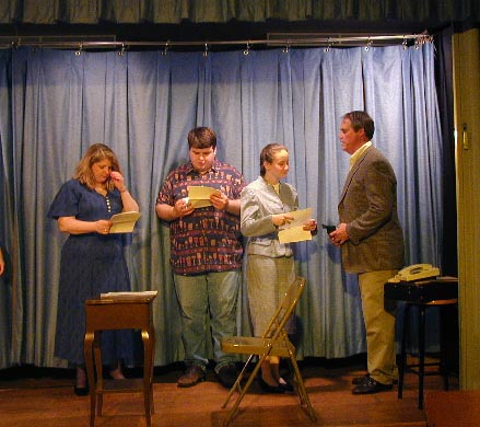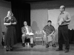(L-R) Karen (Susan Hedges Cote), Alex, Leo (Kevin Eckles) and Lloyd (Dave King) discuss a scene