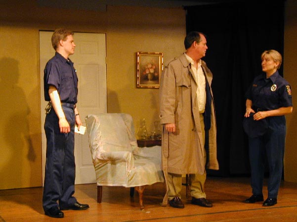 Alex Dennison (Paul Zimmerman) learns of Monica's death from officers played by Karl Esterly and Donna Abel