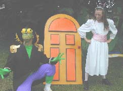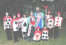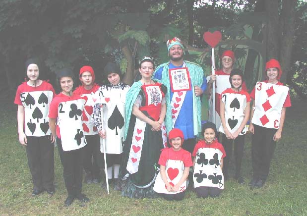 Donna Abel as the Queen of Hearts and Richard Cole as the King with the card people.