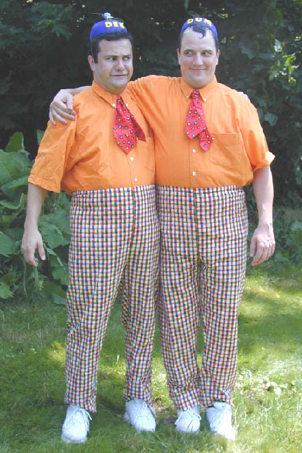 Ryan Howe and Brian Irons as Tweedledee and Tweedledum