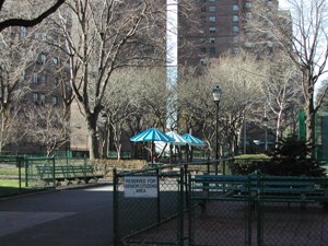 | The infamous Murder Stable was run by a vicious Black Hand leader named, Ignatius" Lupo the Wolf" Lupo. The original location was torn down during the 1950's and the Plaza Houses, what you see here, was built at the location. This is the exact corner that the Murder Statble sat on. It can be found between 1st and 2nd Avenues. |