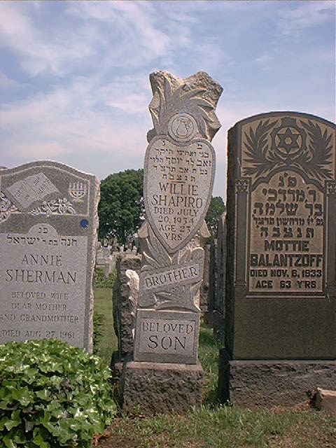 | Mt. Lebanon Cemetery, Queens New York Lyssianker Society Block K Same row as his brother Meyer Shapiro |
