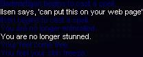 Haha, tried to get a few minutes of expin' in at the Gnomes today... Tons of campers! So I just chatted with friends for a few minutes and then logged off to take care of some stuff. Now it's late! It's past 7 pm and I'm rather tired, (been up since before midnight) Crazy schedule... Can't wait untill the summer! Oh well, this is a pretty pathetic update, but so far I've done some kinda update everyday since I made this site, and while I will most likely start slacking off with this page at some point soon, at least I'm doing something with it now. So here's this little rambling in my news section for now. I might have some more stuff to put up here soon, tomorrow perhaps. Of course, I still hope to get more screenshots. Sticking up a screenshot is an easy excuse for an update anyhow.