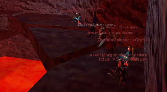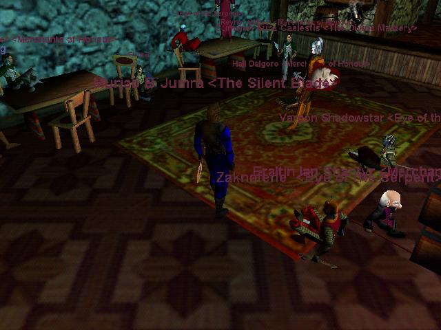 Wow, so I'm finally updating the page again! Hehe, I missed one day and broke my streak, and then just kept putting off the updates. Guess it was easier once there was no more streak to worry about. But anyway, to to various reasons, (some explained more fully on the message board), I had taken a short little break from EQ, but it looks like I'm back now. I've got my expansion CD, too, and have just gone on my first trip to Kunark. Took awhile, taking various boats, then I hung around the dock in Kunark and begged for a bind like a newbie for quite a long time, then joined Machieaveli and Bayere on a trip to the City of Mist. I found out that autofollowing someone at full speed into a deep chasm might not have been the most prudent decision, but it turned out to be a rather amusing experience. As it turns out, a lot of guild members ended up in the City of Mist, too, and we had a fun time beating down stuff in a new dungeon experience.