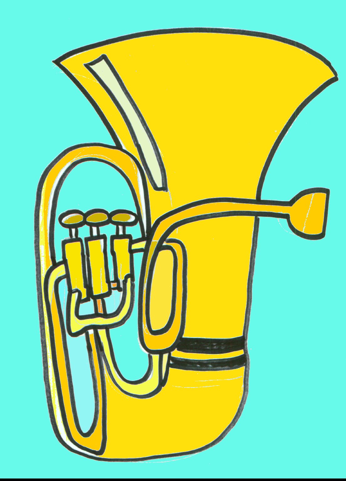 Tubas are made in a variety of shapes. Some of them wind around the player so that he/she can support it more easily while marching.