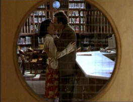 air horn. Giles and Jenny have made up and are kissing in the library.