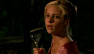 to, Pat catches Oz in her glare, but Buffy gets up and puts a shovel