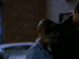 and runs into Buffy. They exchange a few words and then Angel freaks