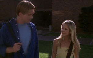 Spike finds Buffy's dorm through the school computer system. Riley's