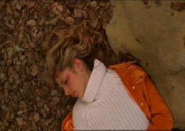 falls and slides down a hill, hitting her head on a rock. Pretending to