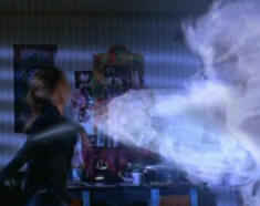 Buffy is attacked by the formless demon which she can't hurt, but she