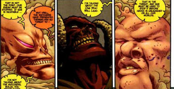 they’re in his leader’s lair. Looking up at the leader, Mel looks at him