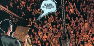 them straight into Hell. Or rather he’s bringing it home to them.