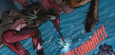 ground. Suddenly, the creature roars in pain and Mel comes through its
