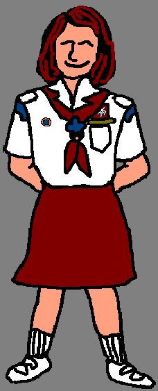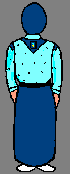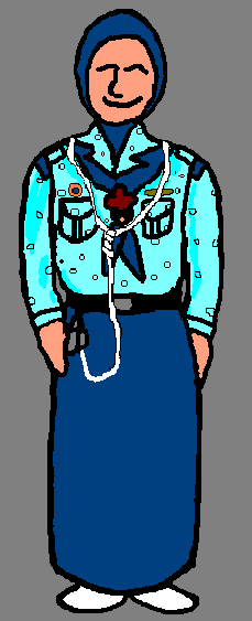Notice that a Ranger no longer wears the patrol patch. Any ribbons worn as a Guide is stripped off. When you graduate from a Guide to a Ranger you essentially wear the same blouse and skirt; changes are in the colour of the scarf and trefoil. The above is a uniform worn by Muslims. Longer sleeves and full length skirt are accompanied by the headscarf. However it is up to the individual choice of a Muslim to wear like so.