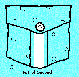 The emblem, trefoil, world badge and name tag are worn on the same locations as the brownie outfit. Add a nice dangling lanyard and hook the shiny whistle and cutlery to the belt and it is done! The circles on the blouse are actually tiny imprinted trefoils. In addition to the uniform, a Guide with post wears white ribbons on her left pocket. The number of ribbons correspond to the post held: