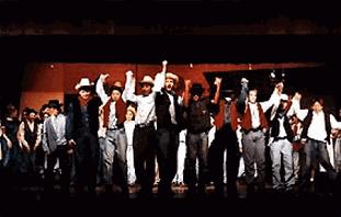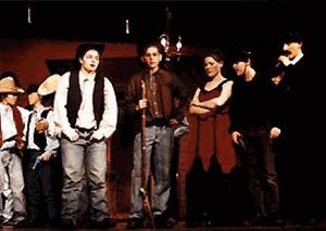 然而這位女演員卻和導演不大對台,Michael Kidd根本便沒打算把她放進那場戲裡,到最後雖然二人還是折衷地解決了問題,但之間的嫌隙卻越來越深。David Merrick對這種免費的宣傳當然非常沒所謂,因此並沒有出言阻止,到最後越鬧越大。回到劇的本身,此劇的音樂歌詞富西部感覺之餘亦甚見佳作,劇本亦原本地把原作的精神寫進了裡面,而編舞亦盡見功價。可惜此劇卻生不逢時,遇上了"仙樂飄飄處處聞"與"費歐尼路!"兩套鉅作,相形之下雖然不能說是失敗,但絕對是失色了。曾出演此劇的還有:Andy Griffith、Scott Brady、Marc Breaux、Jack Prince、George Reeder、Swen Swenson等等。