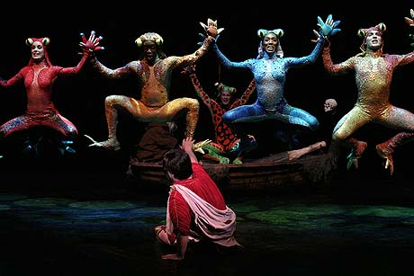 此劇改編自405BC的古希臘喜劇,注入了現代及政治的元素。所謂"再改編"是因為Nathan Lane本人在劇本上作了很多改動,務求使其更惹笑。原作者Aristophane在當時是為了一個戲劇節而作的,內容有很多地方都是諷刺當時的政局、經濟等問題。當然當時蕭伯納和莎士比亞都還沒有出世,那是這套音樂劇的改編人Burt Stevelove的主意了。這套音樂劇原本是在1974年耶魯大學的水池上公演的,主要原因還是因為那裡真的有水給青蛙們(泳隊成員)表演。2004年由Susan Stroman編舞的這套音樂劇搬上了百老匯,然而成績卻不算標青。
