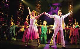 英國倫敦似乎是點唱機音樂劇的孕育搖籃,不管在美國一部點唱機音樂劇如何被評得體無完膚,英國這邊卻依然陸續有此類音樂劇出爐,而且成功的還有機會在美國百老匯上演哩。今次這套音樂劇要介紹的話倒不能不先提一下這部音樂劇的原型同名電影,電影本身並不是歌舞片,然而卻把The Bee Gees的的士高式音樂順利的在全世界出了名。當然此劇同時亦捧紅了名星John Travolta,並引發了一輪爭相模仿的熱潮。有評論指這部電影道出了一個現代版的灰姑娘故事,因為主角在生活上怎麼也說不上是成功人士,在舞池之中卻是稱王稱霸,這是都市中的童話,卻亦更貼近真實。此電影的續集則不如前一部成功,亦只淪為陪跑分子。