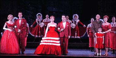 當中包括了憑"芝加哥"重生版聲名鵲起的導演Walter Bobbie、"四十二街"編舞Randy Skinner、"悶伴"的設計師Carrie Robbins、Ken Billington和Acme Sound Partners與"Q大道"的設計師Anna Louizos等等。劇中的編曲也使用了半新潮半舊式的手法,使之更具節日氣氛與五十年代那種樂觀及浪漫風格。全劇的舞蹈當然也是重新改過,絕對是開心為主的編排。此劇2004年在三藩市首演後大受歡迎,在隨後幾年便擴大了上演地方包括了底特律、波士頓、洛杉磯等地,成為繼"聖誕頌歌"之外炙手可熱的聖誕音樂劇。出演過電影的演員有:Bing Crosby、Danny Kaye、Rosemary Clooney、Vera-Ellen、Dean Jagger、Mary Wickes、George Chakiris等,而音樂劇版本則有Brian D'Arcy James、Anastasia Barzee、Jeffry Denman、Karen Morrow、Meredith Patterson、Stephen Bogardus、Kerry O'Malley、David Ogden Stiers、Charles Dean等等。