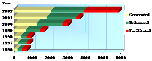 Government also facilitated several job applicants during 2002. For the period CY 1996-2002, the economic development efforts of the Tuguegarao City Government generated,