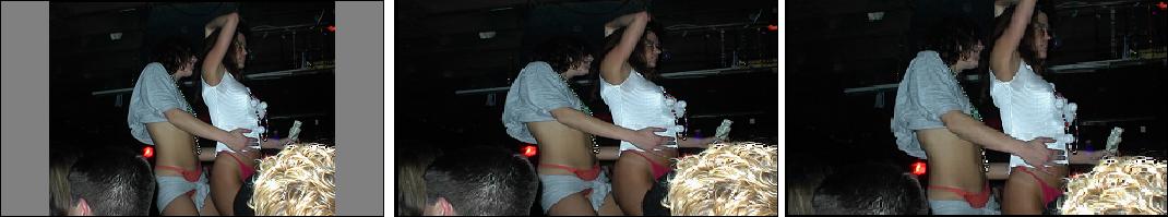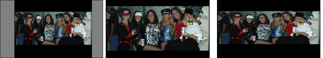 | You can watch it with black bars added to the side and a small image in the center of the scren | crop off the top and bottom of the image, giving you a low resolution image that's only 720x273 pixels | Streatched out to fill the screen, giving you an image where the girls at this Halloween party look short and fat. |