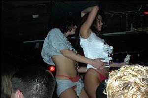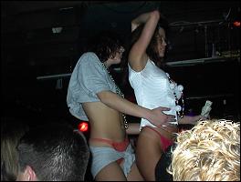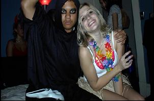 All DVDs have a resolution of 720 x 480 pixels. Simple math says that if the pixels were square the frame would have an aspect ratio of 1 x 1.5. But the pixels are never displayed as squares. If the image is supposed to be 1.33x1 (as in a pre- 1950s movie, many TVs shows or these girls at Mardi Gras) the DVD player makes the pixels taller than they are wide. If the image is supposed to be 16x9 (as in a widescreen TV show like The Sopranos, Babylon 5, most contemporary movies or this shot of my friends Ray Jay and Caroline) the DVD player makes the pixels wider than they are tall.