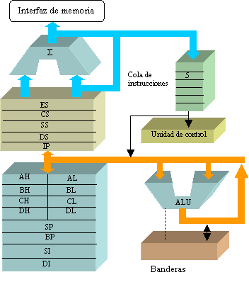 instrucciones de 16 bytes y una cola de tres instrucciones ya decodificadas.