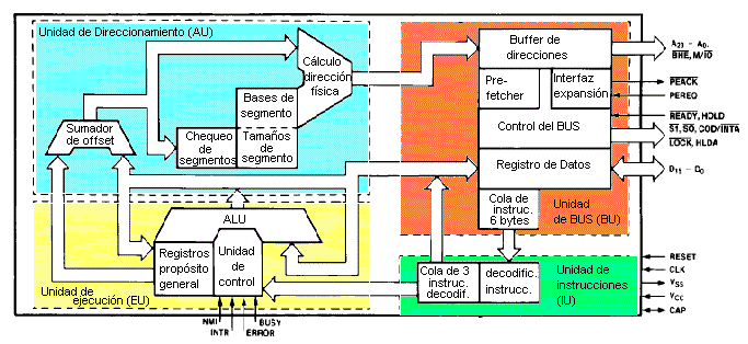 trabaja con segmentos capaces de direccionar hasta 64Kbytes