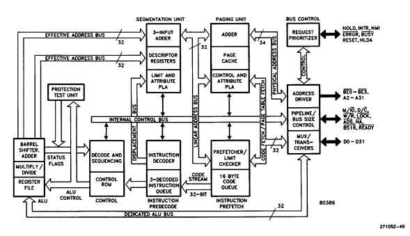 La unidad de Segmentación posee 6 segmentos de acceso directo (Segment Registers que se encuentran dentro del Descriptor Register), uno para programa, otro para pila y los cuatro restantes para datos donde cada uno puede tener un tamaño máximo de 4 Gbytes. Estos segmentos también sirven como índices para manejar la memoria virtual.