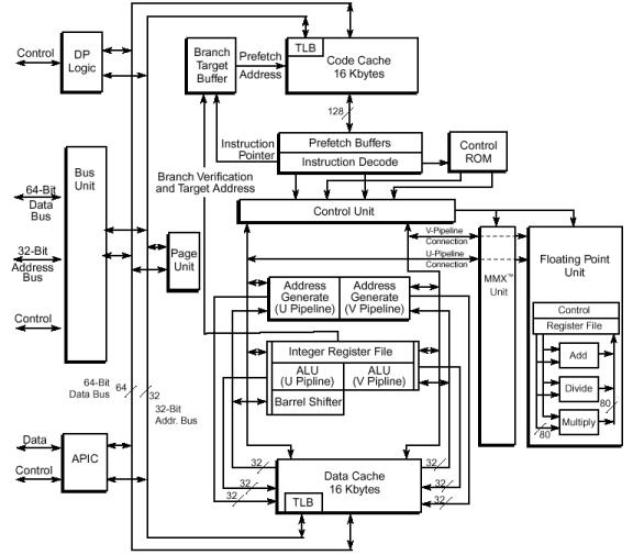 · Se agrego la unidad MMX (Matrix Math extension) basada en la tecnología SIMD (Single Instruction Multiple Data) que permite aumentar el desempeño sobre una gran gama de aplicaciones de multimedia y comunicaciones. Con esta tecnología se incluyen nuevos tipos de instrucciones y datos que mejoran los algoritmos utilizados para estas aplicaciones. Estas aplicaciones incluyen video MPEG, sintetización de música, compresión de voz, reconocimiento de voz, procesamiento de imágenes, gráficos 3D, video conferencias, aplicaciones de modems y audio.