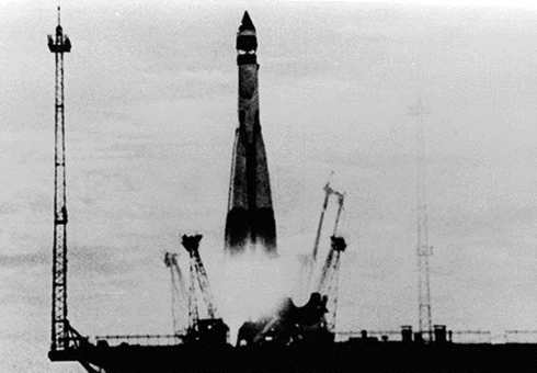 Se o R7 não foi uma arma muito eficaz para levar destruição ao inimigo, mostrou-se uma arrasadora arma de propaganda. Essa história começa em 4 de outubro de 1957, enquanto os americanos amargavam vários insucessos com seus foguetes, um R7 partiu do cosmódromo russo de Tyuratam. A bordo daquele foguete subiu, no lugar da ogiva, uma esfera de alumínio de 83 Kg e 58 cm de diâmetro cheia de nitrogênio. Levava um transmissor a bateria com quatro antenas emitindo um bip-bip que revolucionou o mundo. Era o Sputnik 1, o primeiro satélite artificial. A única informação objetiva que enviava era a variação sua temperatura interna durante os 96 minutos de cada órbita que o levavam a alturas entre 228 e 900 km de altura. Durante os quatro meses que esteve em órbita, o Sputnik transmitiu uma mensagem subjetiva de superioridade e ameaça aos americanos. Foi o início da corrida espacial.